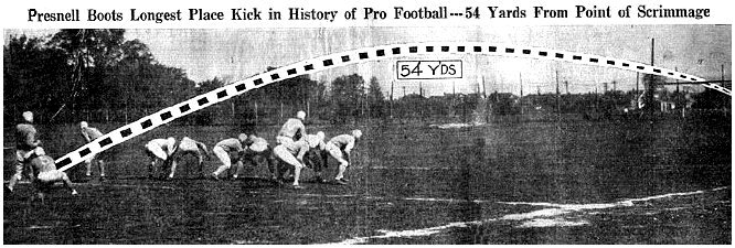 Glenn Presnell of the Detroit Lions place kicked a 54 yard field goal