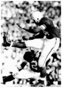 below in a Baltimore Sun photo kicking the record field goal with Tom Keane holding.