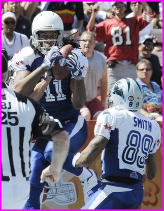 The NFC took over at its 45 with 19 seconds left after a nice kickoff return by Clifton Smith. They ran two plays before Larry Fitzgerald hauled in Brees’ 46-yard bomb with fellow All-Pro Cortland Finnegan on his back as time expired to pull the NFC to 14-10.