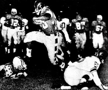 The Giants, the National League champions of 1956, were 10-point favorites. In the end it was their superior team play that tipped the balance despite the performances of Brodie, Barnes, Paul Hornung of Notre Dame Jim Brown of Syracuse and Jon Arnett of Southern California.