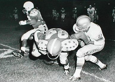 This was quickly followed by an 18 yard touchdown pass by the same combination. With only two seconds left to play in the first half, Conrad made his longest goal, 44 yards, and the All-Stars left the field at halftime leading 20-7.