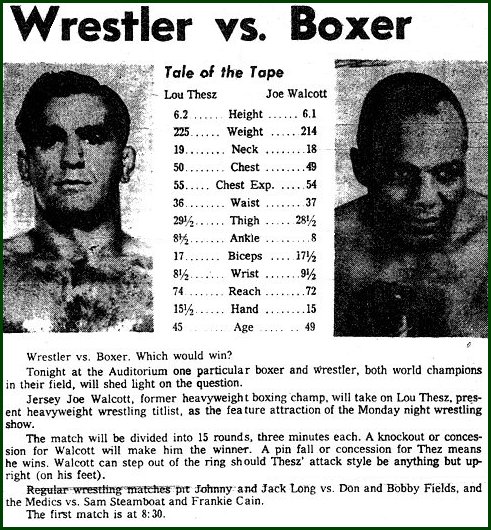 wrestling champion Lou Thesz. Thesz pinned Walcott in the fifth round,