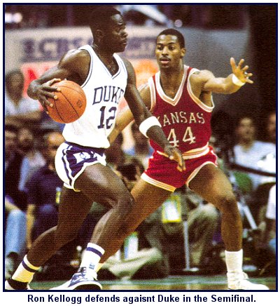 Duke. But then the Jayhawks' Ron Kellogg launched an air ball, which