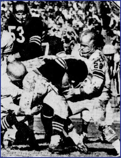 Hopalong Cassady (right) breaks away from Bears' Joe Fortunato for short gain.