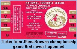 Detroit defeated Los Angeles 31-21 in a 1952 playoff and went on to outplay Cleveland 17-7 in the league championship game. It was the Lions' lone playoff appearance. The 49ers have never been in a playoff.