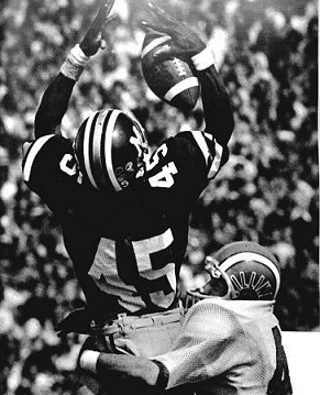 Three plays later Woods lofted a perfectly thrown pass over the head of a Buckeye defender into the corner of the end zone where Brown hauled it in for the touchdown that cut the Buckeye margin to 21-20.
