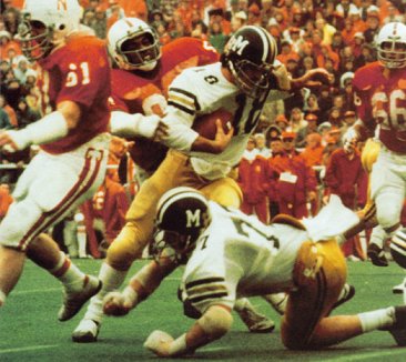 Now the Tigers rose again in the rankings to #12. With easy wins at home against North Carolina and on the road at K-State, Missouri was #9 at 4-1 on October 11. Then disaster struck. They were beaten by Iowa State and again fell mightily in the rankings to #17. Would it not have been for the impressive upsets of USC and OSU, the Tigers surely would have disappeared from the polls entirely. Now, another titanic road game faced them. This time they would travel to Lincoln, NE to face #3 Nebraska. Could it happen again?