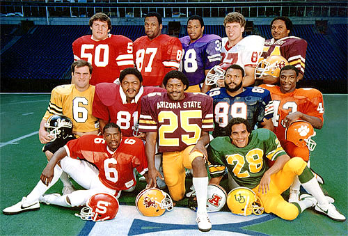 Left to right, top to bottom: Tim Krumrie, lineman, Wisconsin; Jimmy Payne, lineman, Georgia; Mark Stewart, linebacker, Washington; Billy Ray Smith, lineman, Arkansas; Vernon Maxwell, linebacker, Arizona State; Jim Arnold, punter, Vanderbilt; Mike Pitts, lineman, Alabama; Mike Richardson, defensive back, Arizona State; Ricky Hunley, linebacker, Arizona; Terry Kinard, defensive back, Clemson; Eric Williams, defensive back, North Carolina State; Steve Brown, defensive back, Oregon.