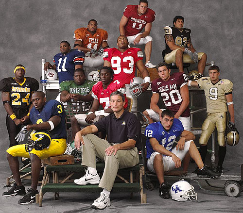 #11 Derrick Johnson, Linebacker, Texas; #11 Teddy Lehman, Linebacker, Oklahoma; #83 Jason Babin, Lineman, Western Michigan; #11 Karlos Dansby, Linebacker, Auburn; #93 Will Smith, Lineman, Ohio State; #24 Rod Davis, Linebacker, Southern Mississippi; #52 Brandon Kennedy, Lineman, North Texas; #7 Chris Gamble, Back, Ohio State; #20 Cody Scates, Punter, Texas A&M; #9 Stuart Schweigert, Back, Purdue; #3 Marlin Jackson, Back, Michigan; Kirk Ferentz, Coach of the Year, Iowa; #12 Derek Abney, Kick Returner, Kentucky. Not pictured: Sean Taylor, Back, Miami.