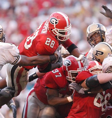 Purdue had a chance to keep the game going. Georgia appeared to get the clinching stop when Kyle Orton threw an incomplete pass on fourth-and-goal from the 8, but the Bulldogs were offsides.