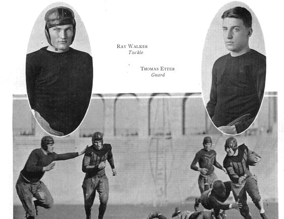 Missouri team captains Sam Whiteman, Art Bond, and Clyde Smith and practicing in the Coliseum (right). |