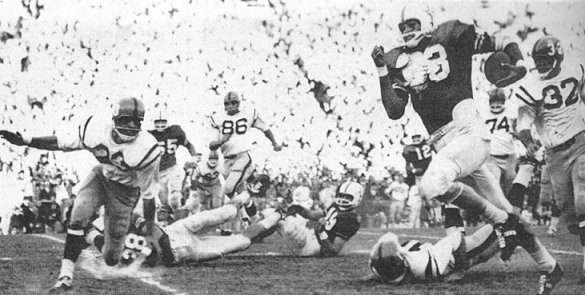 near the line of scrimmage, got a clearing block from Don Talbert and