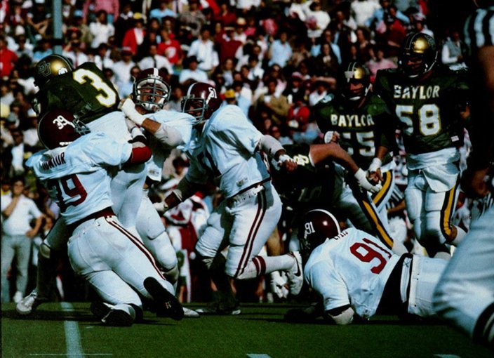 Baylor's Alfred Anderson gets ready to collide with Junior. |