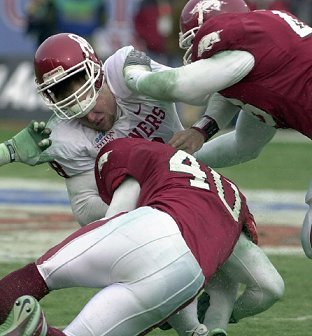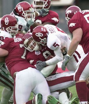 Oklahoma's sacks, which cost Arkansas 55 yards, were its most in a bowl