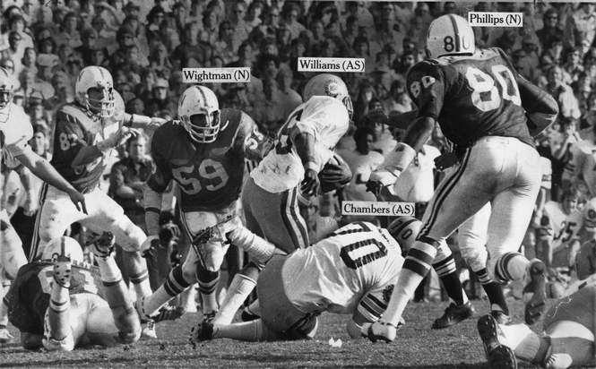 In defeat, Tony Davis established a Nebraska career rushing record by picking up 60 yards. His total of 2,445 yards in three years surpassed the 2,420 set by Jeff Kinney in 1969-70-71.