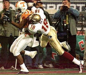 | Price (left) and Martin (right) finished the job in 1999 by winning the first BCS national championship game. | |