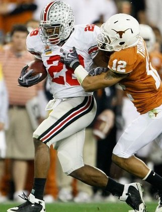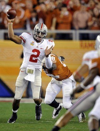 For most of the night, the Buckeyes stifled the high-powered Longhorns, who averaged 43.9 points this season but mustered only a field goal in the first half. They didn't lead until a nifty third-quarter touchdown run by McCoy (video), who also threw for 414 yards and two scores with an interception.