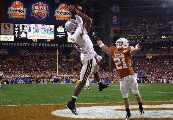 Pryor caught a TD strike from Boeckman that put Ohio State back into the game. |