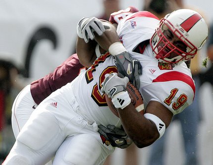 because he stepped on the back of NCAA sack leader Elvis Dumervil's leg