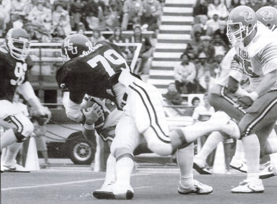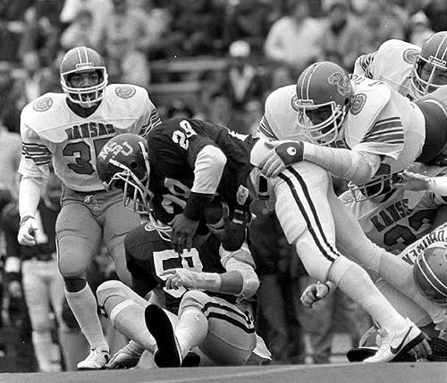 Cornerback Kenneth Johnson ended another Kansas drive by intercepting a Smith bomb on the State 3-yard.