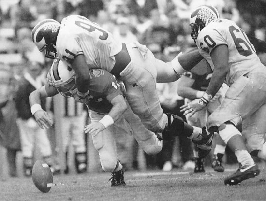 Clarence Thompson ran back one of Michigan's four interceptions 43 yards for a third-quarter touchdown (video), while Derrick Alexander returned a punt 79 yards for a second-quarter score (video) and Todd Collins hit Amani Toomer with a 31-yard TD pass. (video)