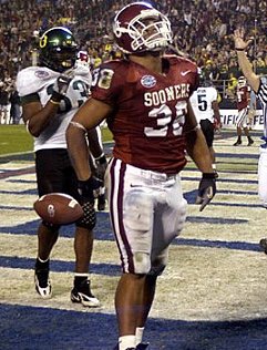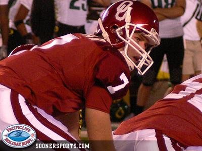| Leaf is pursued by OU. | OU quarterback Bomar. |