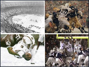 Snowplows got to work clearing the field the day before the game. It did little good. |