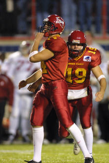 Two plays later, Zow tossed the ball over Jones' shoulder to make up for a poor day. Zow was 11-of-19 for 119 yards with an interception, but he rushed for an 8-yard score in the first half.
