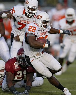 Oklahoma State went ahead 14-7 on Toston's 4-yard run. The Cowboys stretched their lead to 17-7 on a 28-yard field goal by Ricks.