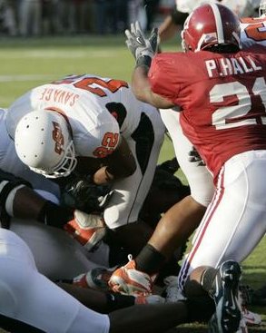 Then Grant Jones fumbled the ensuing kickoff and Chris Rogers -- who forced the fumble -- recovered, giving Alabama a first down on the Oklahoma State 21. Six plays later, left tackle Andra Smith caught a lateral from John Parker Wilson and ran 2 yards to tie the game at 31 (video).