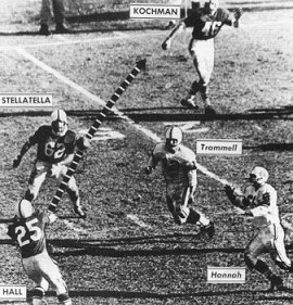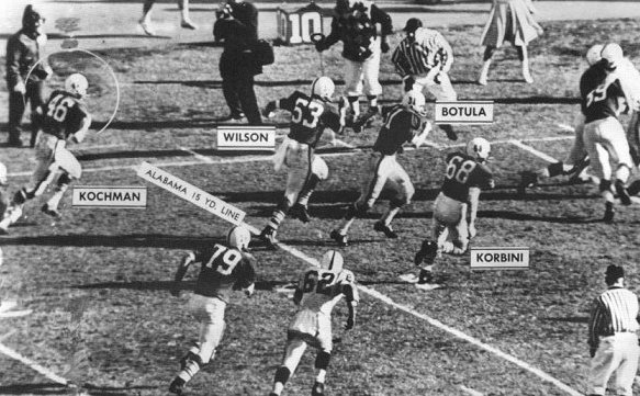 On the fake field goal, Hall appeared to be ready to hold the ball for Stellalella's kick. Instead, he bounced up and pitched to Kochman, who made his way through the startled Alabama defense.
