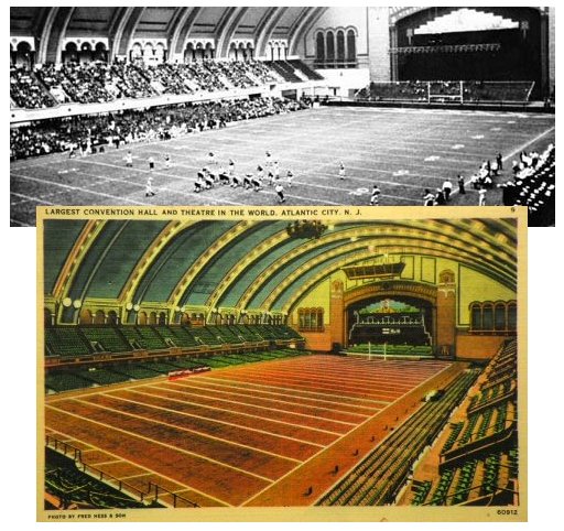 The Atlantic City Convention Hall hosted the first indoor bowl game. |