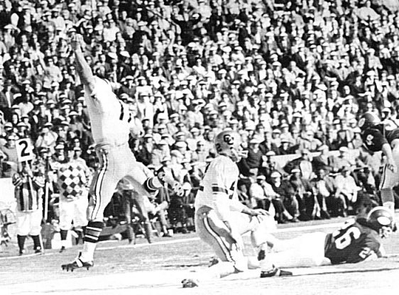 Starting quarterback Scott Hunter injured his knee just before halftime on an unsuccessful two-point conversion effort.