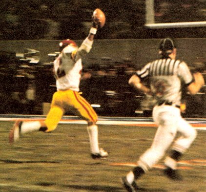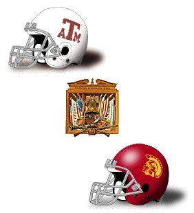 After Evans' first long pass put the ball at the A&M one-yard line, Tatupu dove across to make the score 10-0. Glen Walker, who kicked a 45-yard field goal in the opening period, added a 40-yarder on the Trojans' next possession after Clint Strozier intercepted a pass at the A&M 19.