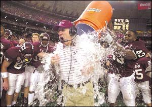 | Slocum got a bath. It was his last bowl game with A&M. | |