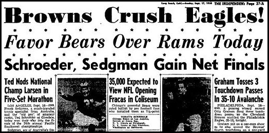 Browns' NFL Debut in '50 Left Eagles Flying Low