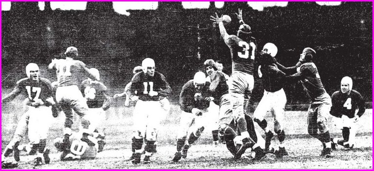 The Stars made 10 first downs to 13 for the Giants. Danowski outpassed Baugh, completing nine out 13 compared to Sammy’s four out of nine. |