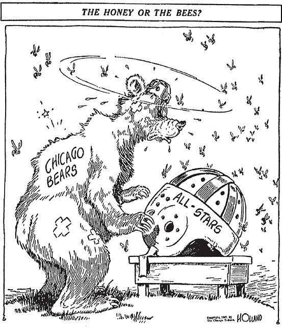 Twice more the All-Stars threatened, recovering fumbles inside the Bear 10 yard line, but on neither occasion could they score.