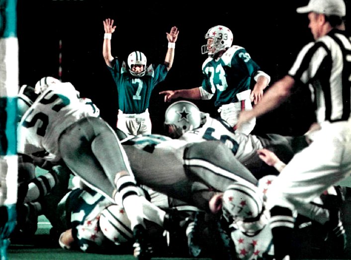 Morton entered the game when Roger Staubach was shaken up late in the first half and tossed two touchdown passes. Sullivan, the Heisman Trophy winner, entered the game in the final quarter, and led the Stars to their only touchdown.