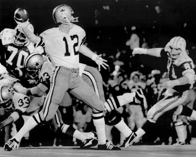 Morton had entered the game with six minutes left in the half after Staubach was sandwiched among three All-Stars as he ran for a first down at the Stars 18-yard-line.