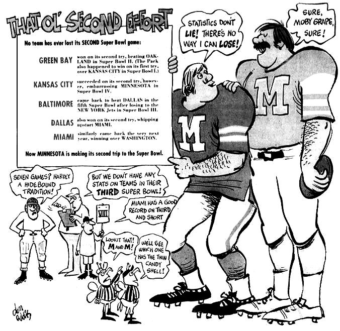 For the second year in a row, ad space was purchased by the opposing hometown newspapers (below). The ad at left, by the Miami Herald, appeared in the Minneapolis Tribune. The Tribune's response (right) appeared in the Miami Herald.