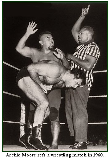 On March 15, 1963 Archie Moore met wrestler “Iron Mike” DiBiase in a boxer-wrestler showdown. Moore was nearing the end of his career and th ematch proved to be Moore’s last career fight. It was the only boxing match for DiBiase. The fight drew a disappointing crowd. The press build up for the fight labeled it as a staged affair. But, it turned out to be legitimate.