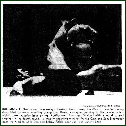 wrestling champion Lou Thesz. Thesz pinned Walcott in the fifth round,