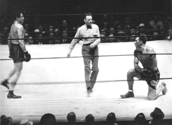 Baer's unorthodox style and rough-housing technique led to Carnera's demise with an 11th round TKO.