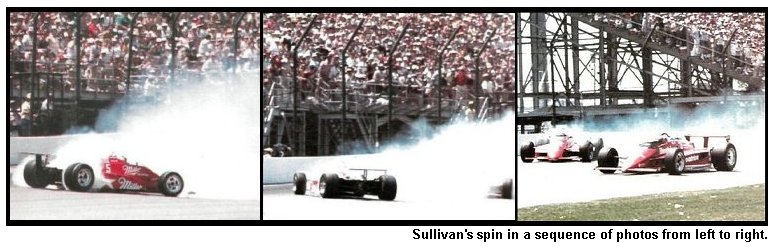 Sullivan, who did a 360-degree spin at high speed after making a pass for the lead just over halfway through the race, somehow managed to miss the concrete wall, gather the car back in and go on to frustrate Mario Andretti's 15th bid for a second Indy victory.