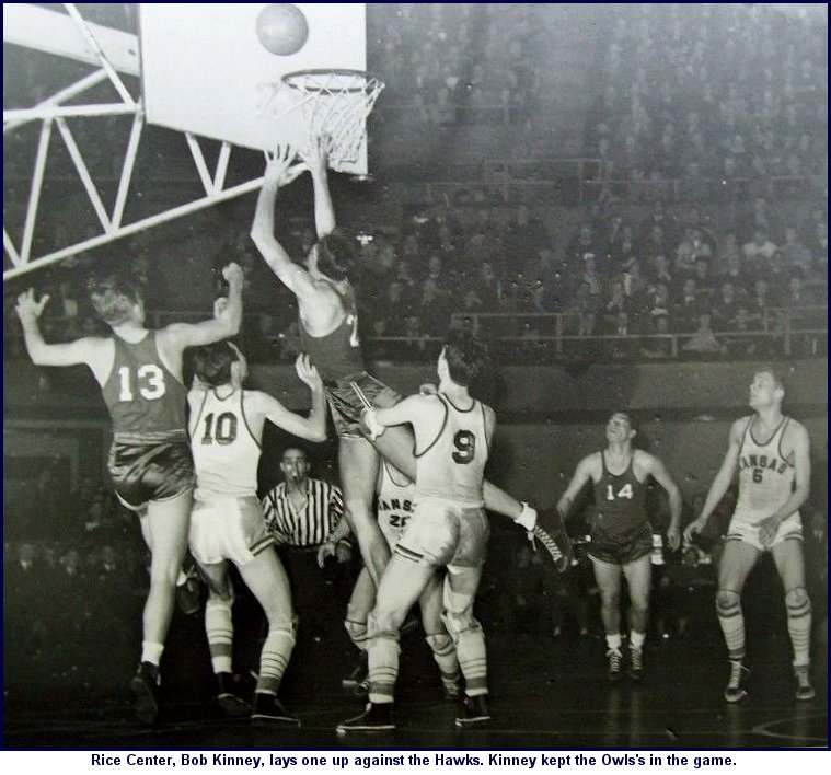 the Rice team was kept in midcourt by the leech-like Kansas guards, the