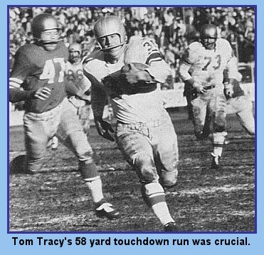 But from that point, fired by brilliant running by Tom Tracy, a reserve back, the Lions took over absolute control to compile 104 yards running and 118 passing. The game never was again as close as the score might indicate.