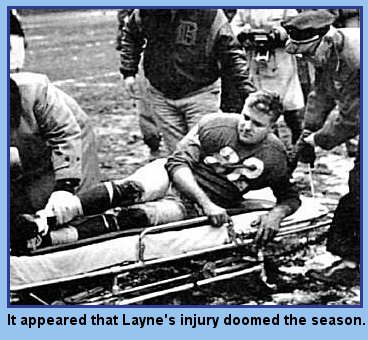 The Lions played their first game without Bobby Layne, who fractured an ankle last week. Tobin Rote assumed the quarterback burden and threw one touchdown pass.