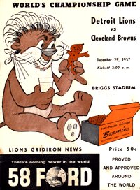 But, in the 1950’s the Lions were a dynasty. On, December 28, 1952, they claimed their first NFL title in 17 years with a 17-7 win over the Browns. They won their second consecutive title on December 27, 1953 by again beating the Browns, 17-16. They reached the championship game for the third year in a row on December 26, 1954, but were crushed by Cleveland, 56-10