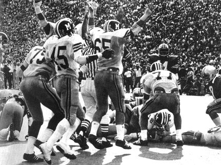 Three plays later Woods lofted a perfectly thrown pass over the head of a Buckeye defender into the corner of the end zone where Brown hauled it in for the touchdown that cut the Buckeye margin to 21-20.